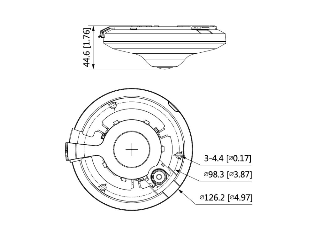5 Mpx IR Fisheye IP kamera, Day/Night, IR prísvit s dosvitom 10 m, 1/2.7" 5Megapixel progressive CMOS, rozlíšenie 2592 × 1944 px, snímkovanie 25/30 fps, citlivosť 0,006 lx @ F2.0, pevný objektív 1,4 mm, uhol záberu H: 180°, V: 180°, D: 180°, AWB, WDR 120 dB, BLC, HLC, AGC, ROI, 3D DNR, kompresia H.265 / H.265+ / H.264 / H.264+ / H.264H / H.264B / MJPEG (podporované iba sub-streamom), Inteligentné Funkcie: IVS (Perimeter Protection), People Counting, Intelligent Search, Heat Map, ONVIF kompatibilné, vstavaný mikrofón, audio I/O 1/1, alarm I/O 1/1, RJ-45 (10/100 Base-T), Micro SD karta max. 256 GB, pracovná teplota od -10 °C do +50 °C, napájanie 12 V DC / PoE, spotreba 7,3 W (12 V DC), 8,8 W (PoE), rozmery ø 126,2 x 44,6 mm, hmotnosť 299 g