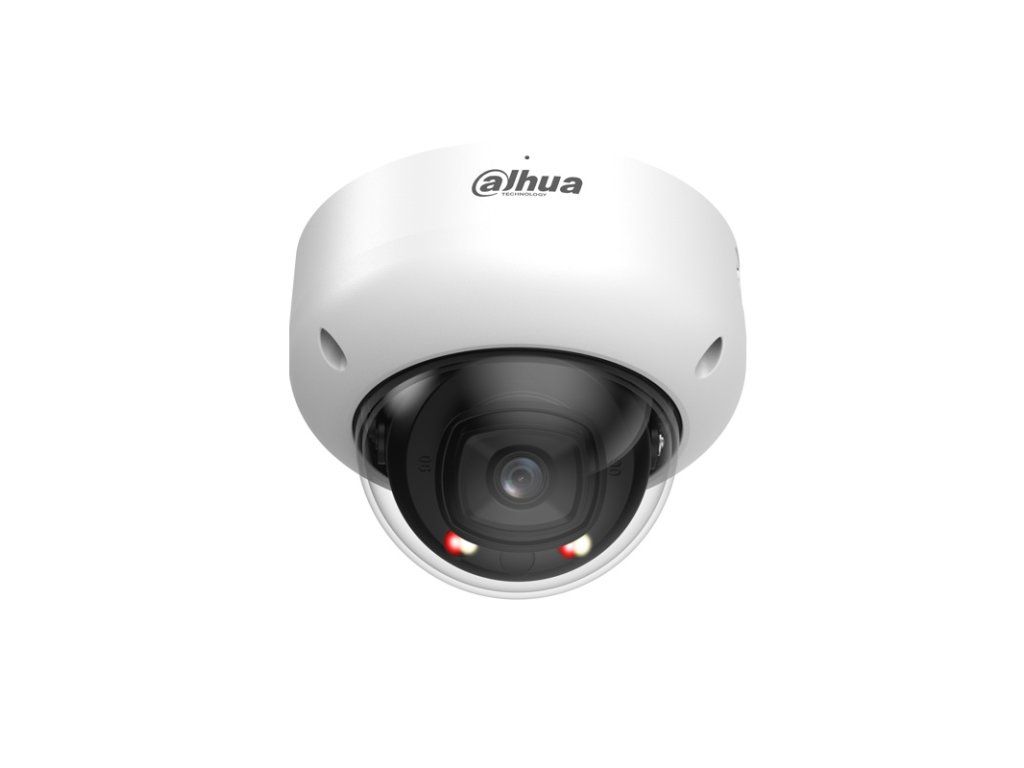 5 Mpx Dome IP kamera, exteriérová, Day/Night , IR 50m, WL 50m, 1/2.7 " 5 Megapixel CMOS, rozlíšenie 2960 x 1668 px @ 1-25/30 fps, citlivosť 0,0009 lx @F1.6, objektív 2,8 mm, uhol záberu H: 108,4°, V: 60°, D: 127,1°; AWB, AI-ISP, BLC, HLC, WDR 120dB, AGC, ROI, 3DNR, SSA, Defog, LDC, Full Color; kompresia H.265 / H.264 / H.264H / H.264B / MJPEG (Sub Stream), RTMP, podpora Smart a AI Codekov, ONVIF kompatibilné; inteligentné funkcie: IVS (Perimeter Protection), Large AI model (Xinghan), SMD 4.0, AcuPick, Face Detection, People Counting, Queue Management, Heat Map, Video Metadata, Smart Search; RJ-45, zabudovaný mikrofón, micro SD karta max. 1TB, Alarm I/O 1/1, Audio I/O 1/1, napájanie 12VDC / PoE+ (802.3at) / ePoE, Dual Power Backup, spotreba max. 15,6W, pracovná teplota od -40 °C do +60 °C, IP 67, IK10 rozmery 94 x ø 122,0 mm, hmotnosť 0,713 kg