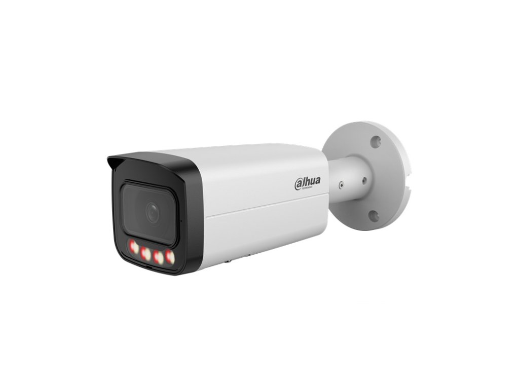12 Mpx bullet IP kamera, exteriérová, Day/Night, IR L a WL prísvit s dosvitom 30 m, 1/2,5 " 12Megapixel CMOS, rozlíšenie 4480 × 2512 px @ (1–15 fps), 3072 × 1728 px @ (1–25/30 fps), citlivosť 0,008 lx pri F1.6, objektív 2,8 mm, uhol záberu H: 112°, V: 58°, D: 136°; AWB, BLC, HLC, DWDR, 3DNR, kompresia H.265 / H.264 / H.264H / H.264B / MJPEG (Sub Stream), podpora Smart codec, ONVIF kompatibilné, RTMP; inteligentné funkcie: IVS (perimeter protection), Smart search, SMD; Alarm I/O 1/1, Audio RCA I/O 1/1, napájanie 12 V DC / PoE (802.3af), spotreba max.: 10,1 W, pracovná teplota od -40 °C do +60 °C, IP 67, rozmery 238,5 x 90,7 x 90,7 mm, hmotnosť 0,72 kg.