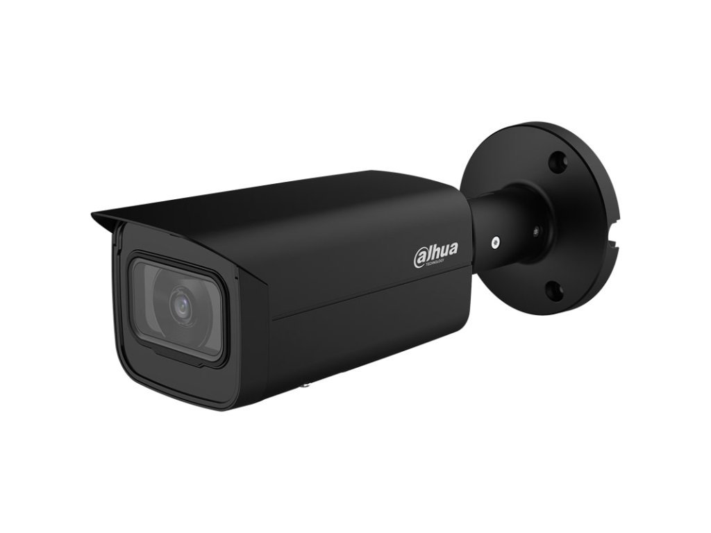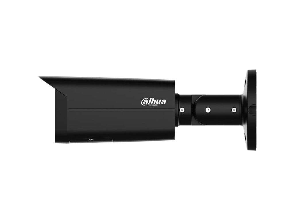 4 Mpx kompaktná IP kamera, čierne prevedenie, exteriérová, IR LED s dosvitom 80 m, 1/1.8" 4 Megapixel CMOS, rozlíšenie 2688 x 1520 px @ 1-25/30 fps, citlivosť 0,0007 lx @ F1.6 (Color, 30 IRE), objektív 2,8 mm, uhol záberu H: 112°, V: 58°, D: 139°, AWB, BLC, HLC, SSA, Defog, WDR 140 dB, 3DNR, kompresia H.265 / H.264 / H.264H / H.264B / MJPEG (Sub Stream), podpora AI a Smart codekov, RTMP, inteligentné funkcie: IVS (Perimeter Protection), Smart Object Detection, SMD 3.0, AcuPick, AI SSA, Face Detection, People Counting, Smart Search, Video Metadata, Heatmap, Smart Sound Detection, ONVIF kompatibilné, slot na MicroSD kartu až 512 GB, Audio RCA I/O 1/1, Alarm I/O 1/1, RJ-45, napájanie 12 V DC / PoE (802.3af), ePoE, spotreba max. 9,8 W, pracovná teplota od -40 °C do +60 °C, IP 67, IK 10, rozmery 244,1 x 79,0 x 75,9 mm, hmotnosť 0,82 kg