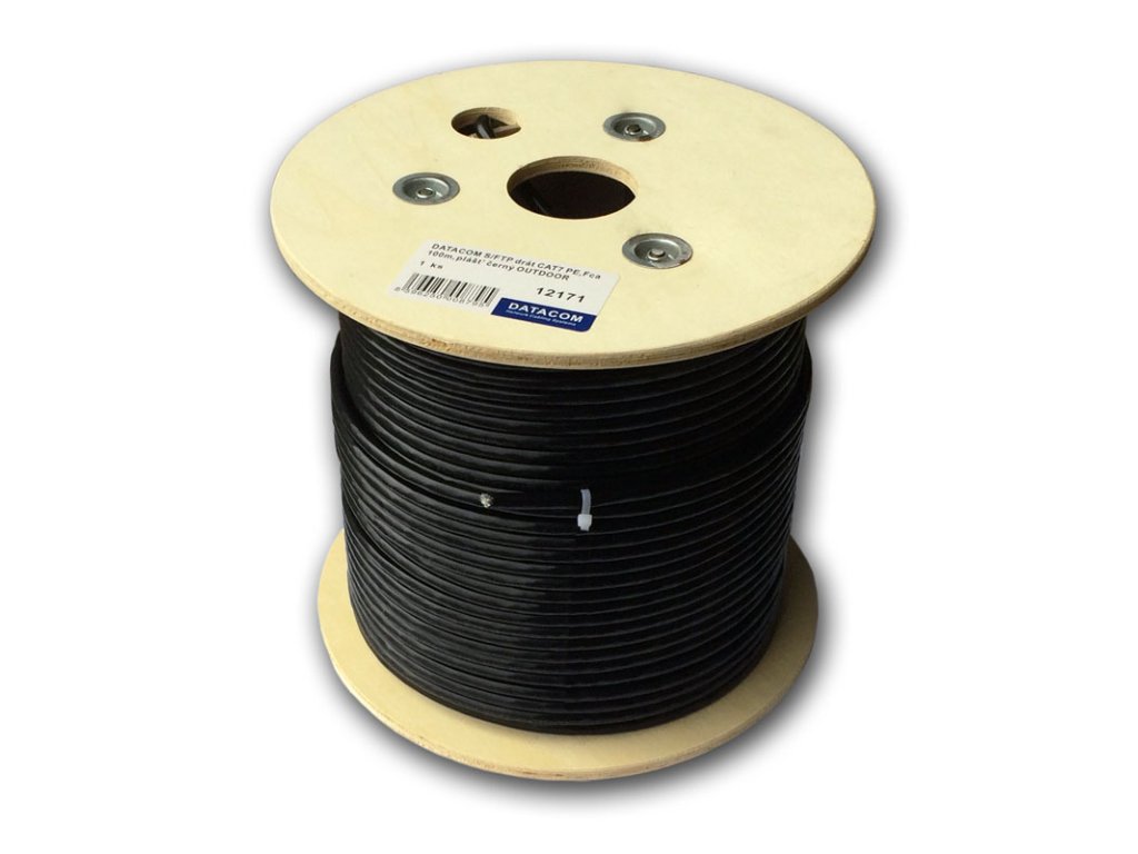 DATACOM S/FTP drôt CAT7 PE, Fca 100m, plášť čierny OUTDOOR