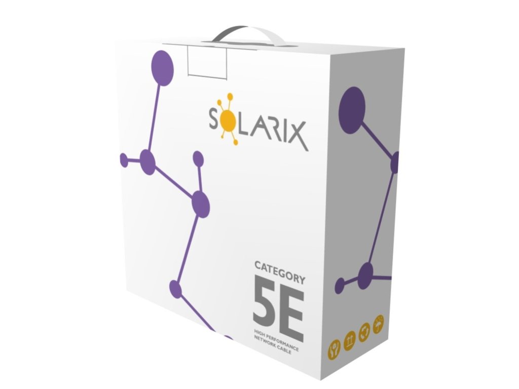 Instalační kabel Solarix s označením SXKD-5E-UTP-LSOH je spolehlivý nestíněný kabel kategorie 5E, který je testován až do šířky pásma 350 MHz, a je určený pro provoz ethernetových protokolů, včetně 2.5GBASE-T a 5GBASE-T*. Konstrukce kabelu je U/UTP, typ pláště LSOH s třídou reakce na oheň Dca-s1,d2,a1. Vodiče kabelu jsou vyrobeny z kvalitního měděného drátu s čistotou mědi 99,97%. Kabel bez problémů splňuje požadavky z mezinárodních standardů ISO/IEC 11801, EN 50173 a ANSI/TIA 568.2-D. Výkonové parametry tohoto kabelu byly otestovány nezávislou testovací zkušebnou FORCE TECHNOLOGY v rámci programu EC Verified, a to na nejvyšší úroveň tzv. Component Level. Certifikát je k dispozici zde na webu v záložce ''Odkazy'' nebo přímo na stránkách laboratoře FORCE. V případě CPR (nařízení EU č. 305/2011) je kabel testován v systému posuzování vlastností AVCP 3. Stejně jako ostatní kabely Solarix, je i kabel SXKD-5E-UTP-LSOH značen metráží po 1 m v rozsahu od 0 do 100 m. Kabel je dodáván ve vysoce odolném třívrstvém leštěném kartónovém boxu (vždy barevně odlišeném podle typu kabelu), na kterém jsou uvedeny všechny nezbytné produktové informace, včetně čárových kódů, výrobní šarže, popisu a nejdůležitějších technických parametrů. Technické parametry Kategorie: CAT5E Podporované protokoly: 2.5/5GBASE-T a nižší Stínění: ne Šířka pásma: testováno do 350 MHz Typ a velikost vodiče: měděný drát 0,50 mm ± 0,005 mm Izolace a průměr vodiče s izolací: HDPE 0,88 mm Třída reakce na oheň, typ pláště: Dca-s1,d2,a1, LSOH Barva pláště: fialová RAL 4005 Průměr kabelu: 5,0 mm Váha: 30,2 kg/km NVP: 68 % Propagation delay: 535 ns/100 m Delay skew: nižší než 45 ns/100 m Skladovací teplota: -20 °C až 60 °C Provozní teplota: -20 °C až 60 °C Teplota při instalaci: 0 °C až 50 °C Balení: 100 m, třívrstvý kartónový box Rozměry balení (výška x hloubka x šířka): 260 mm x 260 mm x 120 mm Počet balení na paletě: 128 boxů