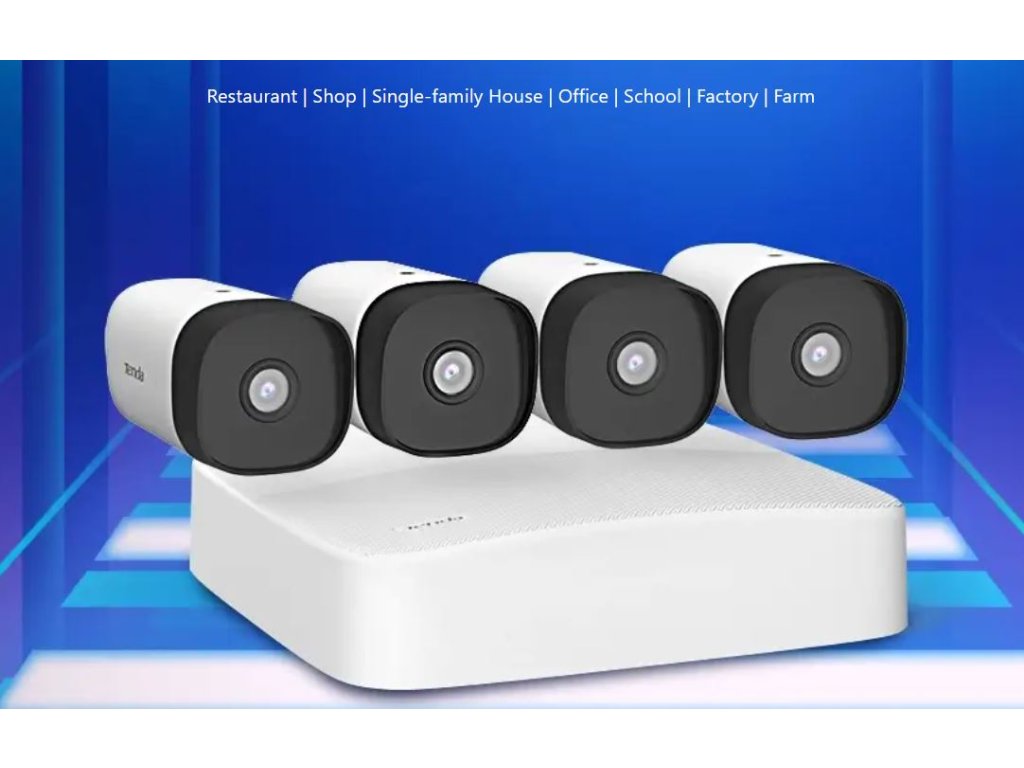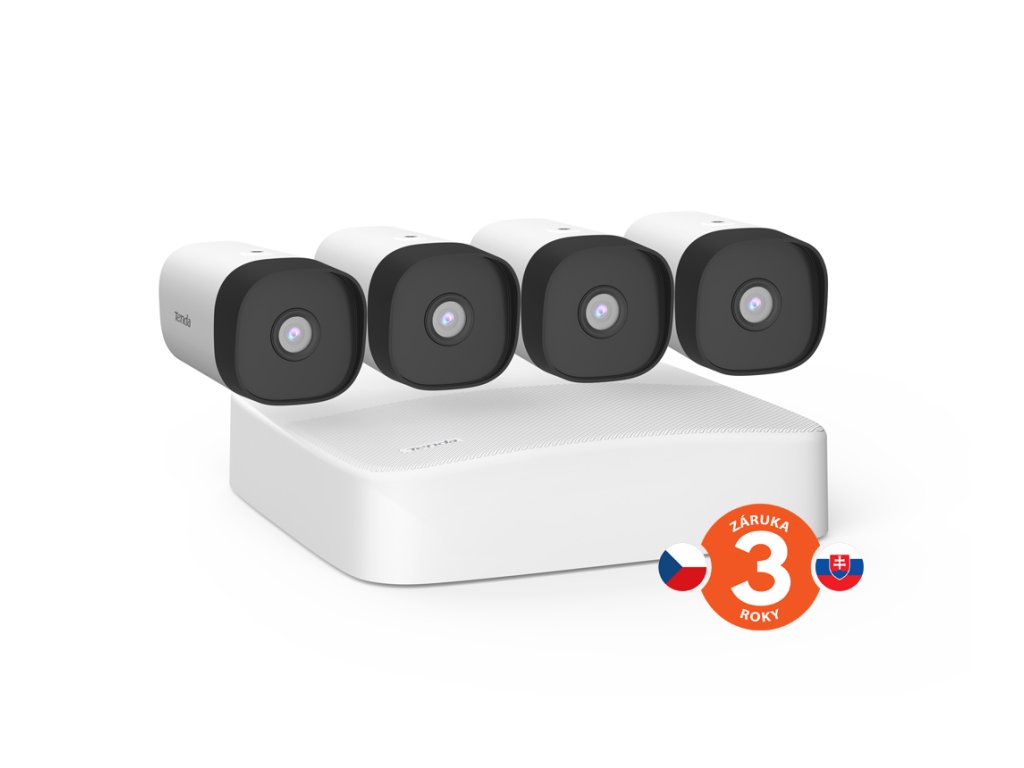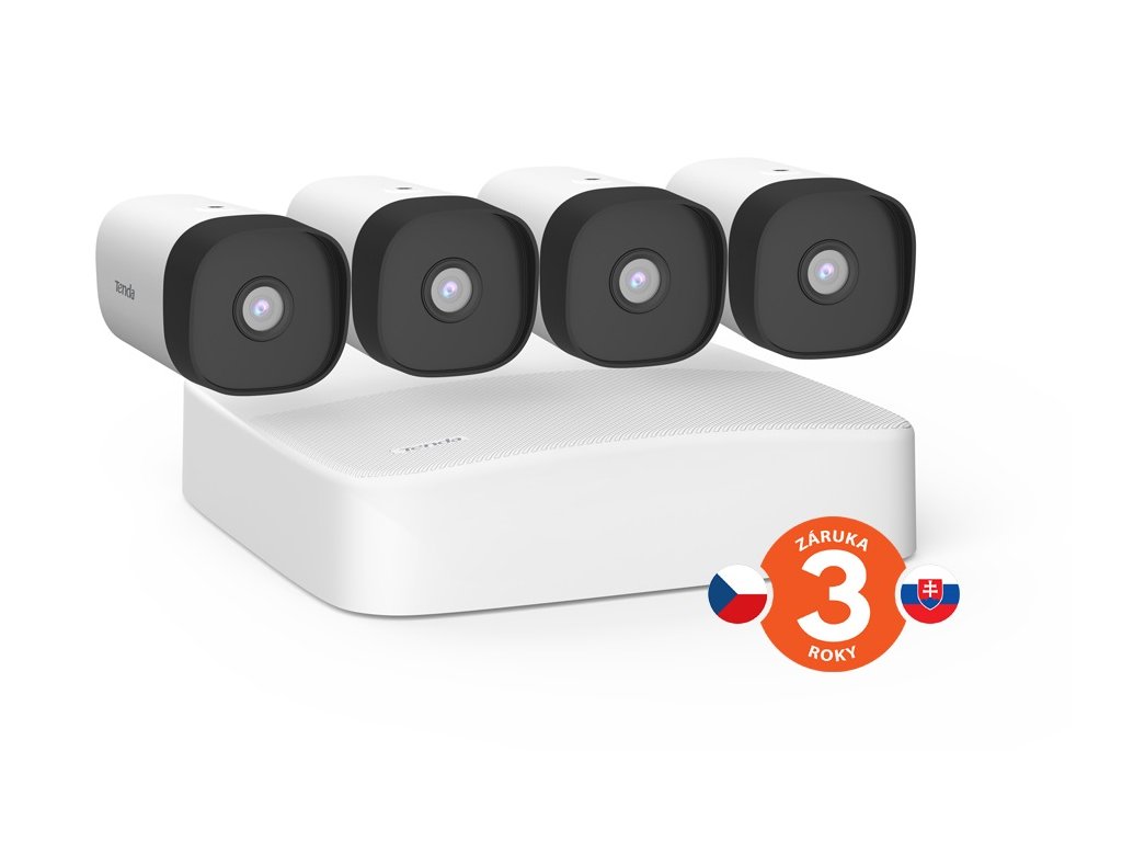 Tenda K4P-4TR - PoE kamerový set 4Mpx, 4CH NVR + 4x IP kamera 4Mpx, IP67, zvuk, web. rozhranie, CZ app