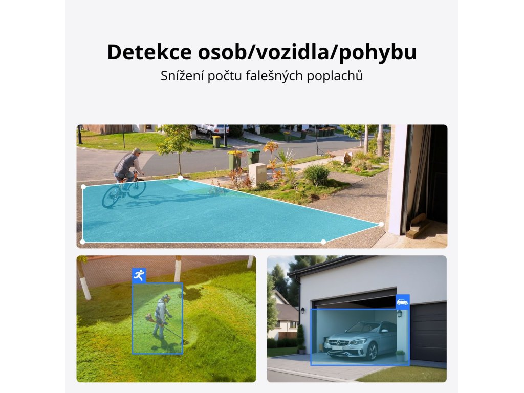 Detekce pohybu, osob, automobilů a zvířat.
