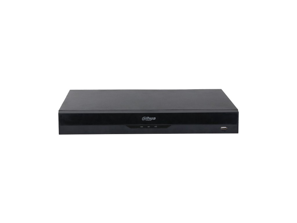 Videorekordér IP sieťový 8kanálový, podporované formáty H.264 / H.265 / MJPEG / MPEG4, záznam max. do 384 Mbps, maximálne rozlíšenie 32 Mpx na kameru, alarm I/O 4/2, 2x SATA III 3,5" HDD max. 16 TB na disk (bez HDD), videoanalýza, AI by NVR - 4 kanály pre Perimeter Protection alebo 2 kanály pre Face Detection / Recognition, 8 kanálov pre SMD plus, 1x HDMI (4K), 1x VGA, podpora ONVIF, podpora IP PTZ Dahua, 1x RJ-45 port (10/100/1000 Mbps), 2x USB (1x USB 3.0), rozmery 1U, 375,0 × 284,4 x 56,0 mm, hmotnosť 1,57 kg (bez HDD)