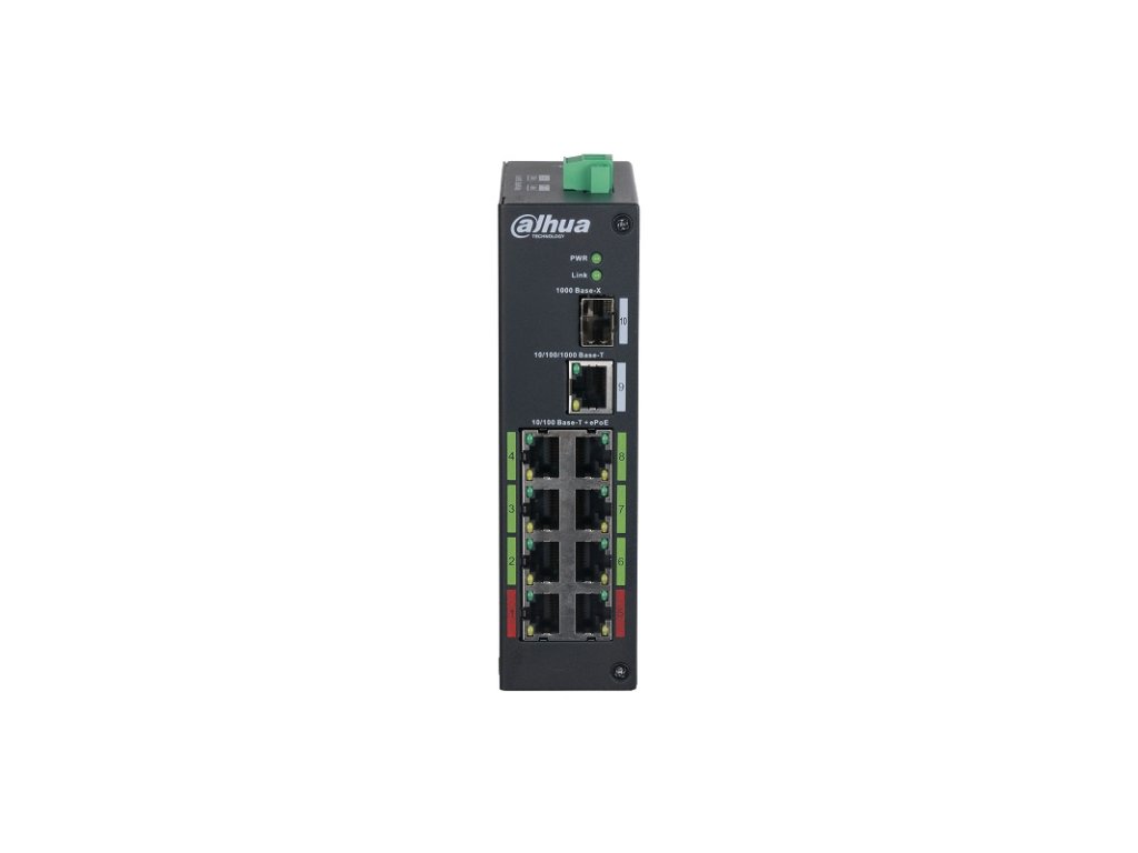 PoE switch od spoločnosti Dahua určený priamo pre kamerové systémy. Zariadenie podporuje na porte číslo 1 a 5 PoE++ (90 W) na ostatných portoch PoE+ (30 W) maximálna spotreba nemôže presiahnuť 120 W. Switch disponuje ôsmimi RJ-45 PoE portami, jedným Gigabit RJ-45 portom a jedným SFP portom. Pre rozľahlé inštalácie disponuje switch PoE v prevedení ePoE s dosahom až 800 m.