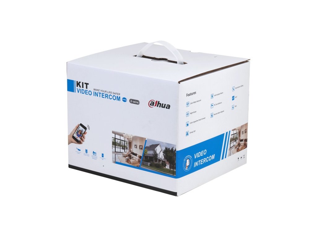 Dahua analógová inštalačná sada, 2-vodičový systém, obsahuje biely 7“ TFT monitor VTH5123H-W s rozlíšením 1024 x 600 px a Wi-Fi, rozmery 130,0 x 189,0 x 23,9 mm, dverná jednotka VTO2003F, kamera 2 Mpx CMOS, uhol záberu na výšku 110° a na šírku 60°, 1x mechanické tlačidlo, 1x ovládanie zámku, rozšíriteľné o druhý zámok cez DEE1010 (nie je súčasťou balenia), IP 65, rozmery 130,0 x 96,0 x 28,5 mm, 2-vodičový ovládač VTNC1003C s napájacím zdrojom 48 V DC (v balení), rozmery 65,2 x 46,2 x 23,2 mm, montážna krabica na omietku VTM115, podpora náhľadu na kameru dvernej jednotky a volania na mobilnú aplikáciu Dahua DMSS