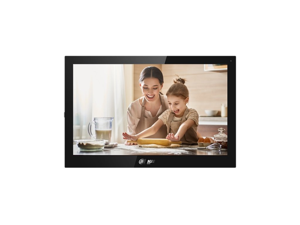 IP Dahua handsfree videomonitor, Android 8.1, prevedenie čierny plast, 10" farebný dotykový LCD displej s rozlíšením 1024 x 600 px, H.264 kompresia, TCP/IP komunikácia, grafické menu, možnosť automatického vytvorenia obrázkov pri neprijatom hovore alebo videa pri zanechaní odkazu po vložení micro SD karty (nie je súčasťou balenia), interkom v rámci viacerých monitorov v byte (max. 6 monitorov), pripojiteľnosť až 20 dverných jednotiek a externých CCTV Dahua IP kamier, podpora prenosu video hovoru / push notifikácie na Android a iOS smartfony cez internet (aplikácia DMSS), 1x RJ-45 konektor pre pripojenie do siete, Wi-Fi 2,4 GHz b/g/n, 6x NO kontakt pre pripojenie alarmových vstupov - funkcia EZS ústredne, 1x NO alarmový výstup, ovládanie 2 zámkov, prizvonenie od dverí, napájanie externým zdrojom 12 V DC / 2000 mA (zdroj nie je súčasťou balenia), alebo PoE 802.3af switchom, montáž na povrch, rozmery 260 x 170 x 15 mm, interiérové použitie
