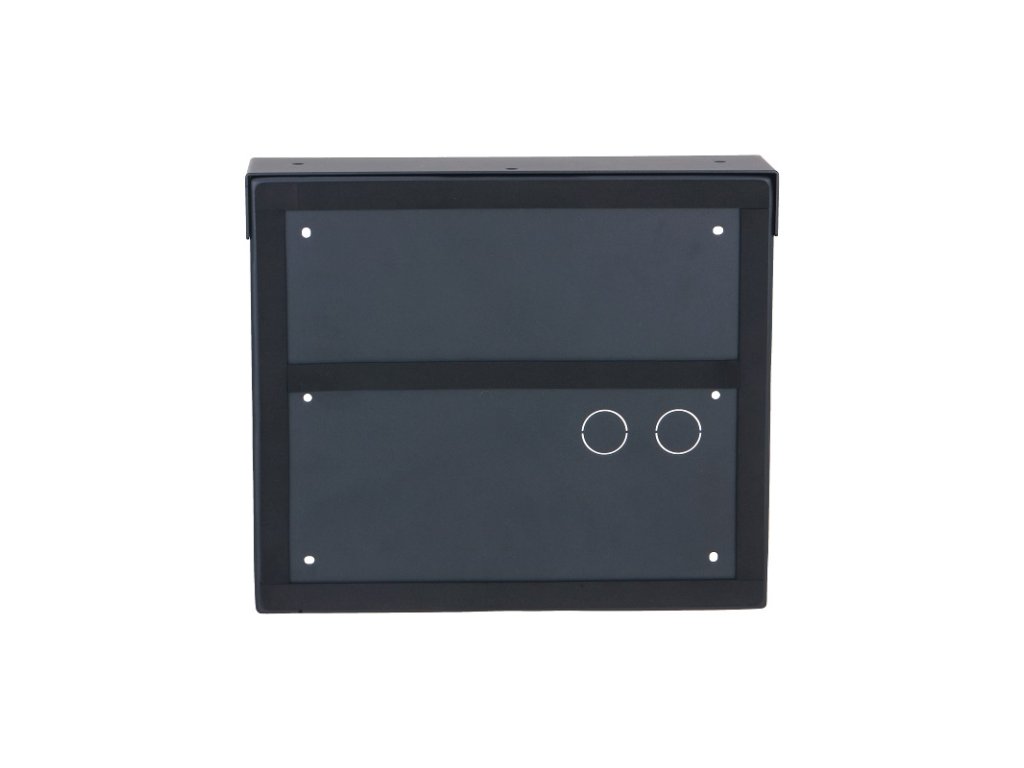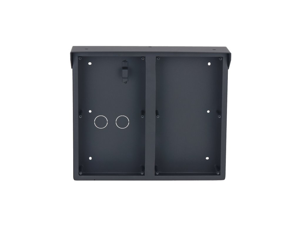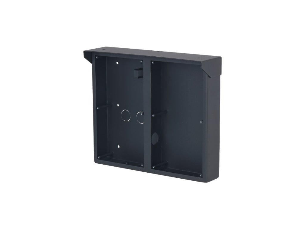 Inštalačná krabica so strieškou pre 2 x 2 moduly a rámik IP modulárneho systému Dahua VTO4202F, na omietku, čierna, hliník, rozmery 241 x 282 x 88 mm, pre inštaláciu sú potrebné dva rámiky VTM25P2