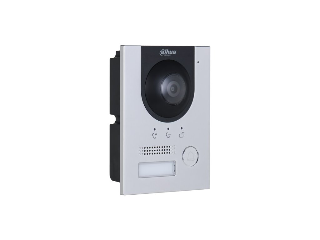 IP Dahua dverná kamerová jednotka s jedným tlačidlom, 2 Mpx farebná kamera, 168° uhol záberu, H.264 a H.265 kompresia, funkcia zanechania odkazu užívateľovi (funkcia dostupná iba s monitormi VTHxxxx), IP 65, IK 07, 1x 12 V / 600 mA kontakt NO/NC pre ovládanie zámku (diaľkovo pomocou mobilnej aplikácie DMSS), 1x NO kontakt odchodového tlačidla, 1x RS-485 pre pripojenie modulu ovládania 2. dverného zámku DEE1010B, napájanie 802.3af PoE switchom alebo napájanie 48 V DC / 1000 mA (zdroj nie je súčasťou balenia), montáž pod omietku / na omietku, rozmery 130,0 x 96,0 x 28,5 mm, bez inštalačnej krabice. TCP/IP komunikácia, nastavovanie cez webové rozhranie, alebo pomocou novej funkcie prvej Rýchlej konfigurácie bez nutnosti použitia webového rozhrania (funkcia dostupná iba s monitormi VTHxxxx s verziou Firmware 4,6 a vyššou).