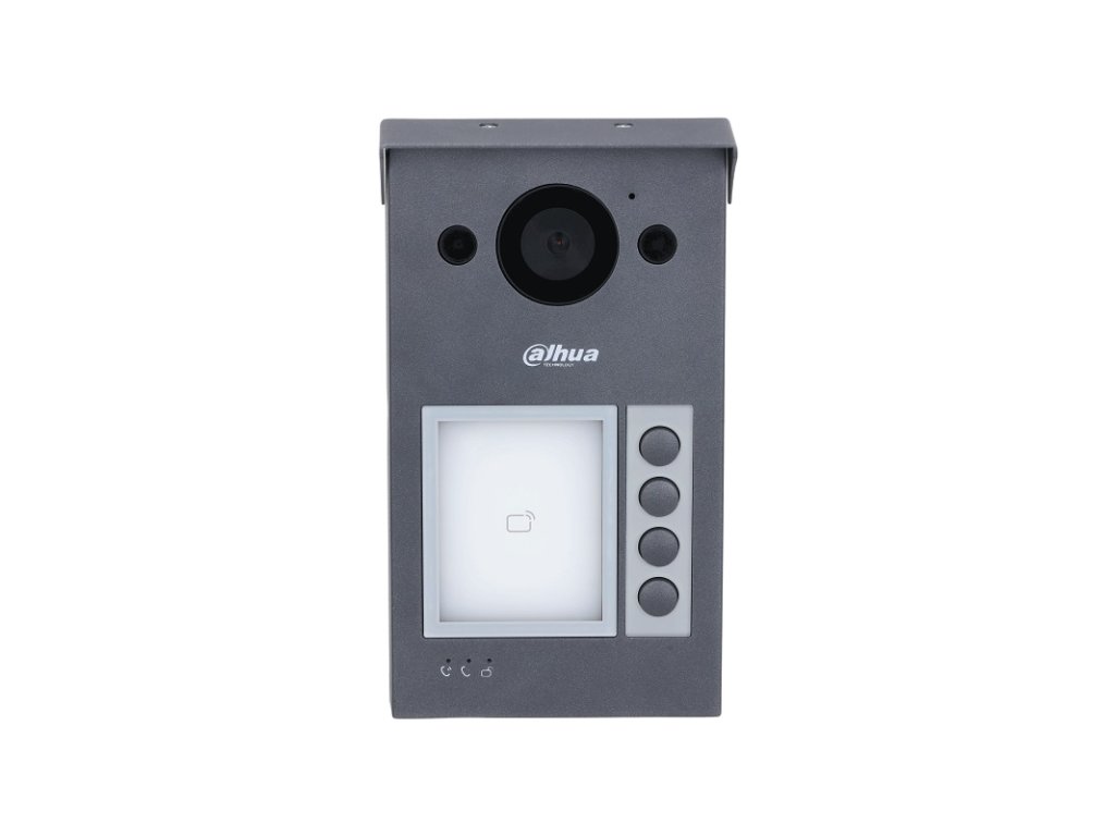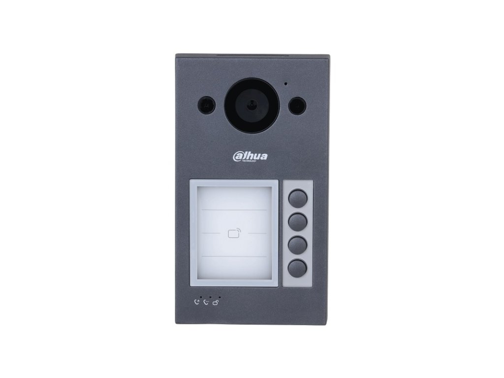 Štvortlačidlová antivandal dverová jednotka určená pre IP technológiu Dahua. Balenie obsahuje 4, 2 a 1 tlačidlový modul, ktorý je možné použiť podľa potreby, jednotka je vybavená integrovanou MIFARE čítačkou. Obraz farebná sníma Full HD kamera s IR prisvietením a pozorovacím uhlom 139°. Nastaviť je možné všetko cez webové rozhranie. 1x výstup 12 V DC/ 200 mA, 1x NO/NC kontakt pre pripojenie zámku.