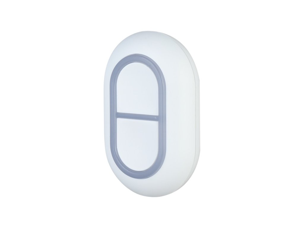 Bezdrôtové PANIK tlačidlo pre systém ARC (868 MHz), s držiakom na stenu, obojsmerná šifrovaná rádiová komunikácia vo frekvenčnom pásme 868 MHz, dosah do 1400 m na voľnom priestranstve, 2 tlačidlá, 1 LED o stave systému, kontrola stavu batérie, batéria CR2032 3 V, rozmery 55,0 × 36,0 × 14,2 mm