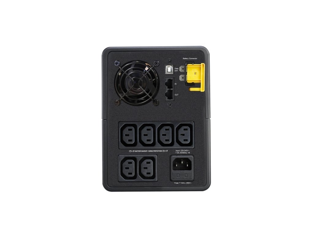 APC Back-UPS 2200VA, 230V, AVR, IEC Sockets. Bateriový záložní zdroj s ochranou proti přepětí pro elektronická zařízení a počítače. VÝSTUP Kapacita výstupního výkonu [W]: 1200 Kapacita výstupního výkonu [VA]: 2200 Jmenovité výstupní napětí [V]: 230 Topologie: Pasivní Typ křivky: Iterační aproximace sinusového průběhu Výstupní přípojky: (6) IEC 60320 C13 (Záložní provoz na baterie) VSTUP Jmenovité vstupní napětí [V]: 230 Typ připojení vstupu: IEC 60320 C20 Kmitočet na vstupu [Hz]: 50/60 +/- 5 Rozsah vstupního napětí pro napájení z rozvodné sítě [V]: 140 - 300 BATERIE A DOBA BĚHU Typ baterie: Olověná baterie Obvyklá doba nabíjení [Hod]: 8 Očekávaná životnost baterie: 3 - 5 let KOMUNIKACE A SPRÁVA Port rozhraní: USB Ovládací panel: Diodová indikace stavu on line : napájeno baterií Zvukové upozornění: Upozornění na stav, kdy je systém napájen z baterie : zřetelné upozornění na nízkou kapacitu baterie FYZICKÉ Maximální výška [cm]: 19 Maximální šířka [cm]: 14 Maximální hloubka [cm]: 39 Čistá hmotnost [kg]: 12,3 Barva: černá Provozní teplota [°C]: 0 - 40 Hlučnost 1 metr od povrchu jednotky [dBA]: 40 Zahrnuje: Uživatelská příručka Záruka: 2 roky Odkaz na web výrobce: https://www.apc.com/shop/cz/cs/products/APC-Back-UPS-2200VA-230V-AVR-IEC-Sockets/P-BX2200MI