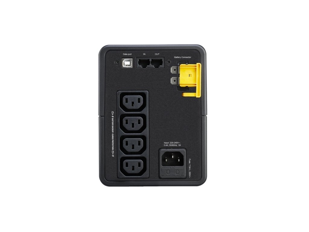APC Back-UPS 750VA, 230V, AVR, IEC Sockets. Bateriový záložní zdroj s ochranou proti přepětí pro elektronická zařízení a počítače. VÝSTUP Kapacita výstupního výkonu [W]: 410 Kapacita výstupního výkonu [VA]: 750 Jmenovité výstupní napětí [V]: 230 Topologie: Pasivní Typ křivky: Iterační aproximace sinusového průběhu Výstupní přípojky: (4) IEC 60320 C13 (Záložní provoz na baterie) VSTUP Jmenovité vstupní napětí [V]: 230 Typ připojení vstupu: IEC 60320 C14 Kmitočet na vstupu [Hz]: 50/60 +/- 5 Rozsah vstupního napětí pro napájení z rozvodné sítě [V]: 140 - 300 BATERIE A DOBA BĚHU Typ baterie: Olověná baterie Obvyklá doba nabíjení [Hod]: 8 Očekávaná životnost baterie: 3 - 5 let KOMUNIKACE A SPRÁVA Port rozhraní: USB Ovládací panel: Diodová indikace stavu on line : napájeno baterií Zvukové upozornění: Upozornění na stav, kdy je systém napájen z baterie : zřetelné upozornění na nízkou kapacitu baterie FYZICKÉ Maximální výška [cm]: 16 Maximální šířka [cm]: 12 Maximální hloubka [cm]: 35,5 Čistá hmotnost [kg]: 5,4 Barva: černá Provozní teplota [°C]: 0 - 40 Hlučnost 1 metr od povrchu jednotky [dBA]: 40 Zahrnuje: Uživatelská příručka Záruka: 2 roky Odkaz na web výrobce: https://www.apc.com/shop/cz/cs/products/APC-Back-UPS-750VA-230V-AVR-IEC-Sockets/P-BX750MI
